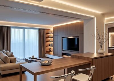 في “مؤسسة الحلول الرباعية”، نفخر بخبرتنا الواسعة في تصميم وتنفيذ ديكورات داخلية متميزة للفنادق. نتعامل بشكل وثيق مع أصحاب الفنادق والمستثمرين لتحويل رؤاهم إلى واقع ملموس يسلط الضوء على هوية العلامة التجارية وينعش تجربة النزلاء. يعمل فريقنا المتخصص من المصممين الداخليين والخبراء على استكشاف الأسواق المستهدفة وتحليل احتياجات النزلاء. بناءً على ذلك، يتم إنشاء تصاميم فندقية مبتكرة تجمع بين الجمال الوظيفي والأناقة الفنية. من تصميم المساحات العامة كاللوبي والردهات إلى تنسيق الغرف وأماكن الإقامة، نولي اهتمامًا دقيقًا بكل تفصيل. كما نقدم خدمات التنفيذ والإشراف الكامل على المشروع حتى التسليم النهائي، مستخدمين مواد ديكورية عالية الجودة ومتطابقة مع المعايير المهنية. سواء كنت ترغب في تجديد فندقك أو تصميم فندق جديد، فإننا في “مؤسسة الحلول الرباعية” نتعهد بتقديم حلول ديكورية متميزة تعزز من تجربة الضيافة وتضيف قيمة إلى علامتك التجارية. اتصل بنا اليوم لنبدأ رحلة تحويل رؤيتك إلى واقع.